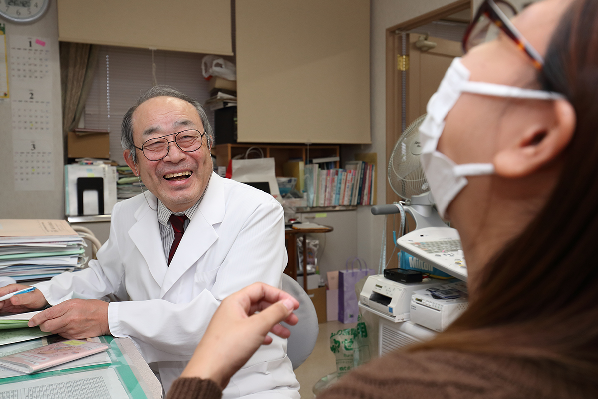 先生は、気さくでやさしい方です。時に厳しいところもありますが、患者様一人ひとりのお話を一生懸命に聞かれています。患者様が診察室に入っていらっしゃる様子からしっかりと診て、病気などの説明の際も、紙に手書きしてわかりやすく説明されています。